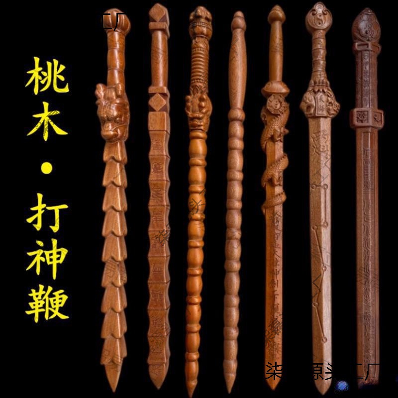 桃木打龍虎七星剣道家用品道士法器天師剣龍頭九節鞭