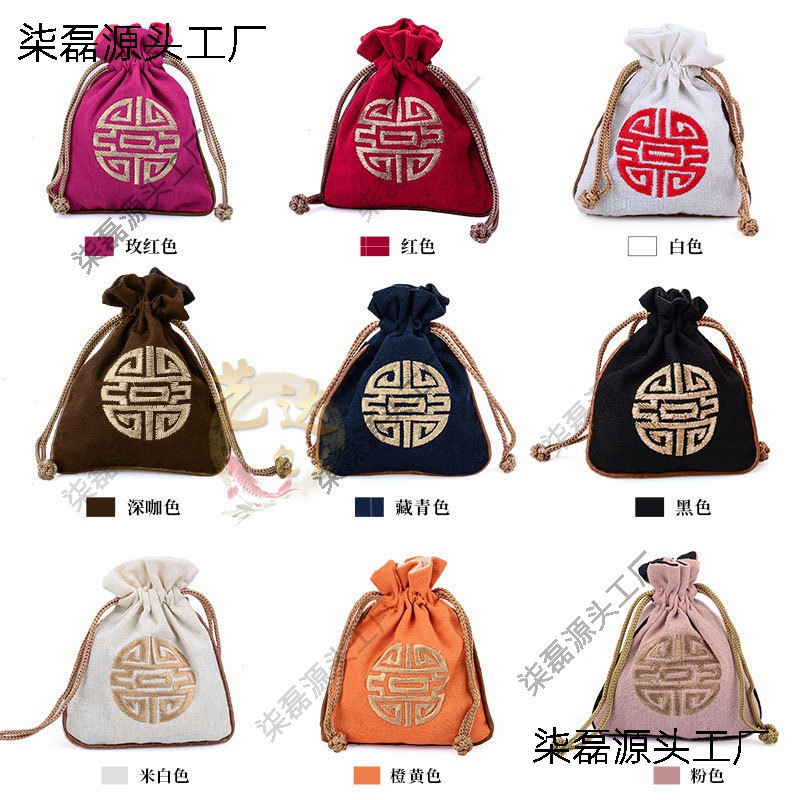 リネン刺繍巾着袋レトロ福袋ジュエリー収納袋文遊びケア袋ギフト袋巾着袋