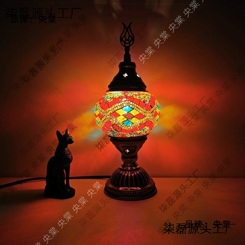 トルコモザイクライトカラーロマンチック手作り民族風小電気スタンド寝室書斎カフェホテルバー