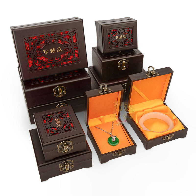 メーカーは赤木樹脂の透かし彫りの宝石の首飾りの箱のブレスレットのペンダントをまねて部品を収納してブレスレットを包装して箱を包装します。