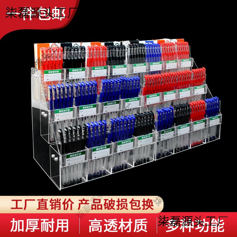 スーパーマーケットのアクリルベルトの価格は棚の文房具の店のペンを展示します。