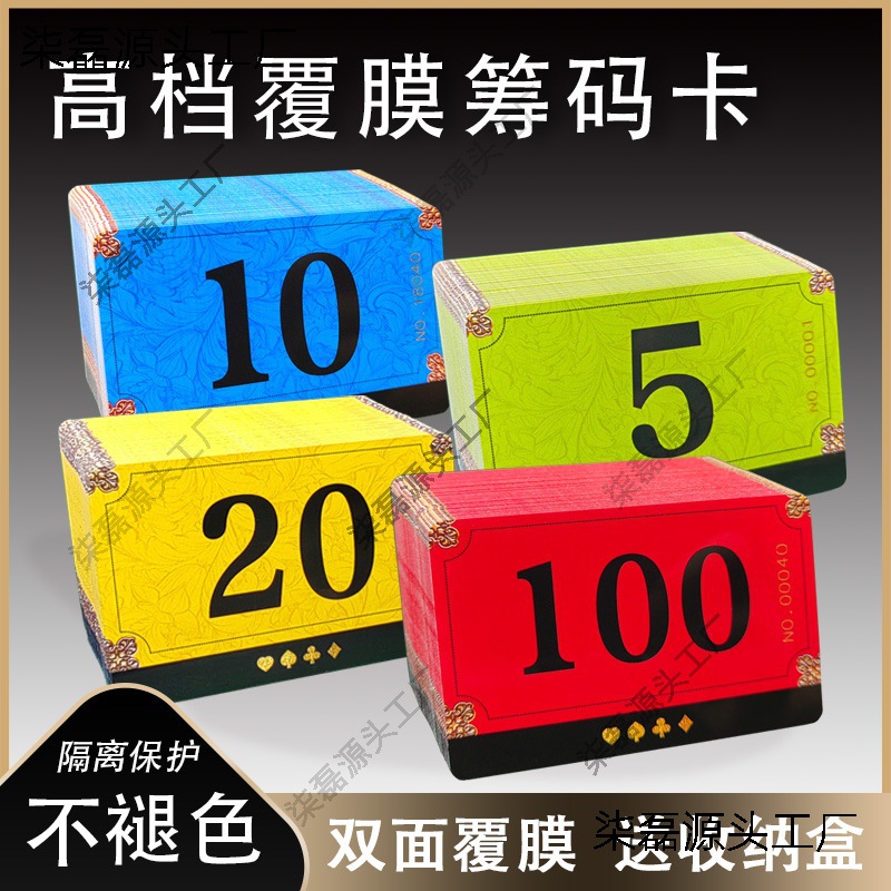 両面覇膜棋牌マージャンチップカードの多くの額面の新しい材料は耐磨耗して色あせない