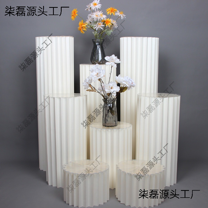 結婚式の折り紙のデザート台の紙のローマの柱の折柱の道は円柱の置物のデパートのショーウインドーの誕生日のパーティーの配置を引きます。