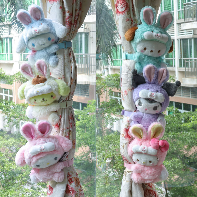 変装ウサギのクロミカーテンはかわいい玉桂犬のパチャ犬のカーテンを掛けて漫画の車の上で人形を飾ります。