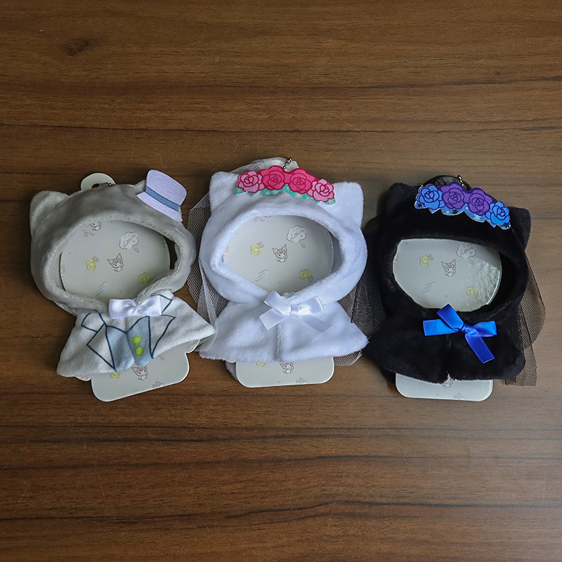 かわいい猫のスーツのウェディングドレスの子供服15cmの人形のペンダントのマントの漫画の綿の人形の服のマント