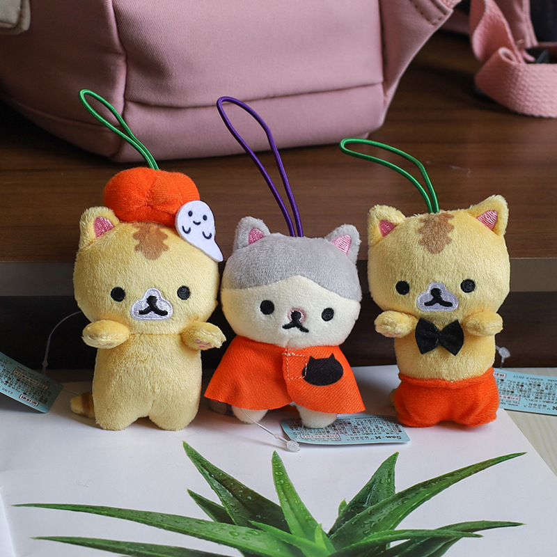 ハロウィーンパン猫のバッグにかわいいカボチャの子猫のぬいぐるみのぬいぐるみのキーホルダーがついています
