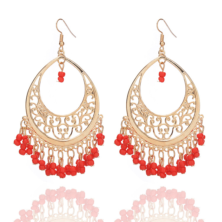 欧米のボヘミアンの透かし彫りの米の玉の流蘇の潮流のイヤリングの8118