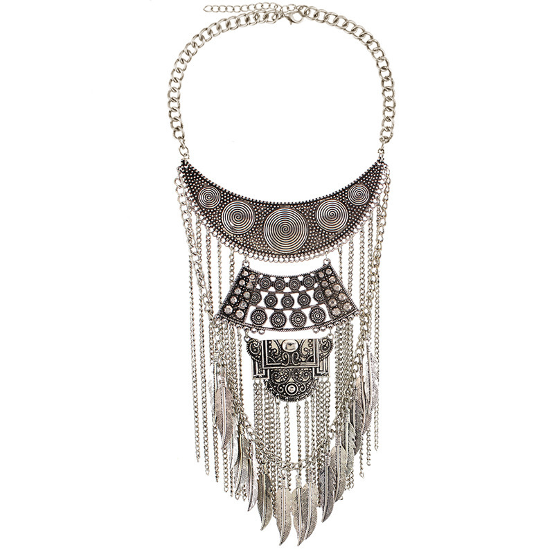 欧米のパンクファッション民族のレトロなフリンジの羽の多層の鎖骨のネックレスのセーターのチェーンの卸売りxべべ