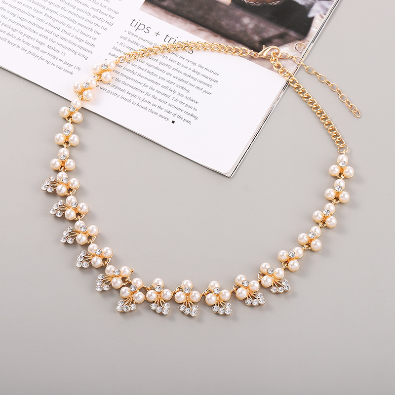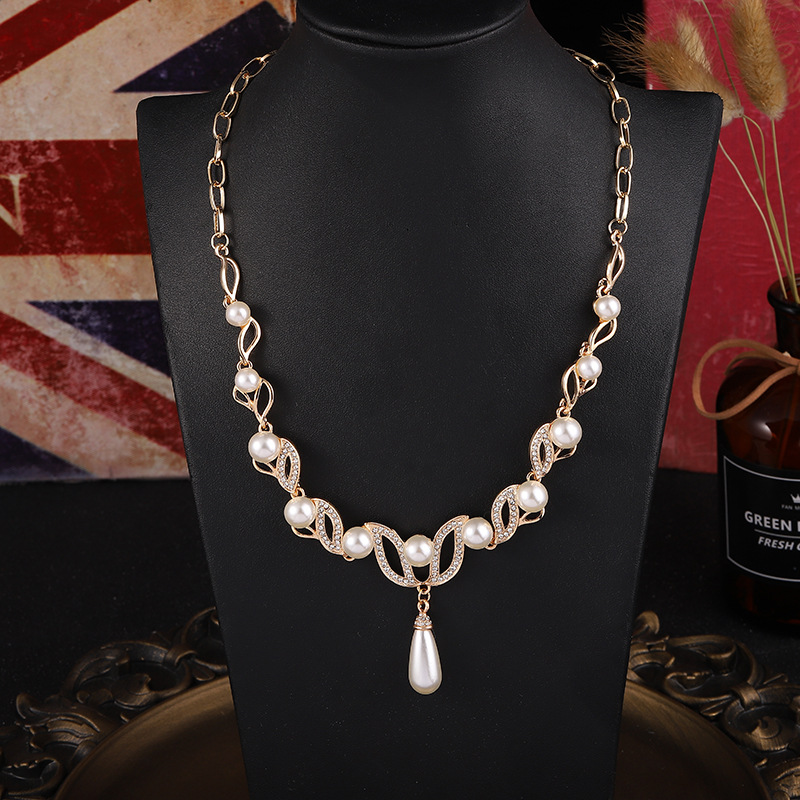 新型ファッション韓国風花嫁真珠ネックレスセット中国式金色ウェディングアクセサリー豪華ショーアクセサリーX019