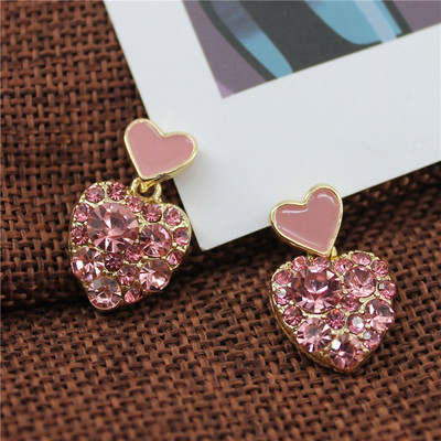 S925銀針がキラキラ光るピンクのハート型イヤリングの釉薬愛のイヤリングの女性のイヤリングのアクセサリーの卸売りse03