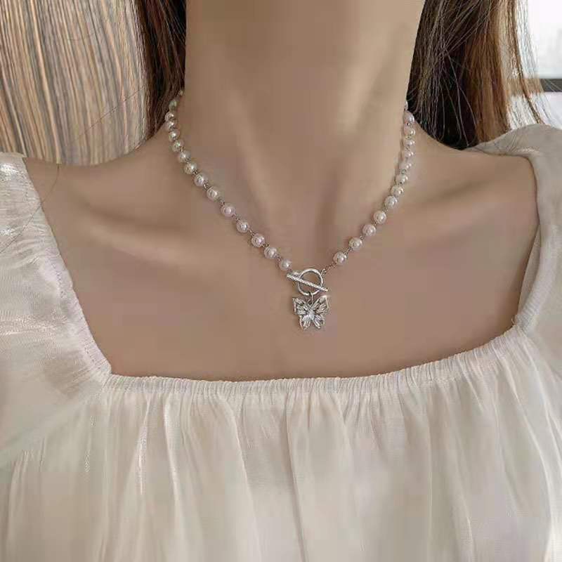 韓国東大門女性超仙気質百合真珠蝶首鎖ネット赤ins博主同ネックレスX020