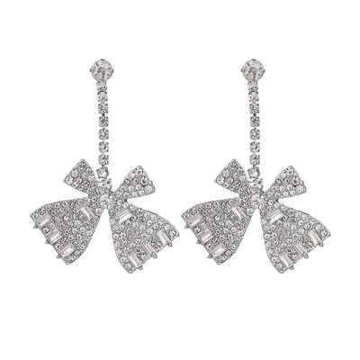 925銀針欧米重工満ドリル蝶結びのスカートのイヤリングの個性的なファッションネットの赤い新型の耳飾りe 032