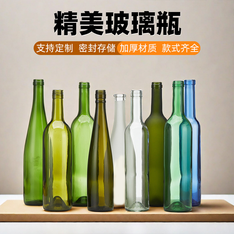 最新のガラス製ワインボトル家庭用飲料ボトル縦紋白ボトルシールワイン青梅酒空きボトル