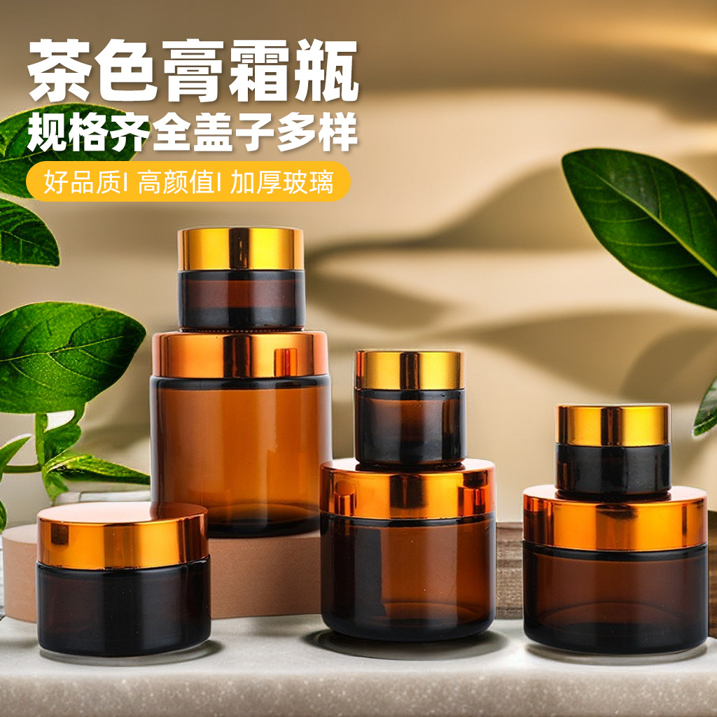 茶色クリーム分注瓶茶色ガラスクリーム瓶アイクリームガラス空瓶密封携帯旅行スキンケア瓶
