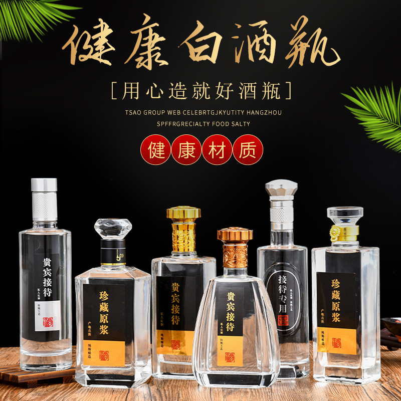 現物ガラス透明白酒瓶は自分で食糧酒を作って瓶を分けて1斤の酒瓶の結婚披露宴白酒瓶を入れます。