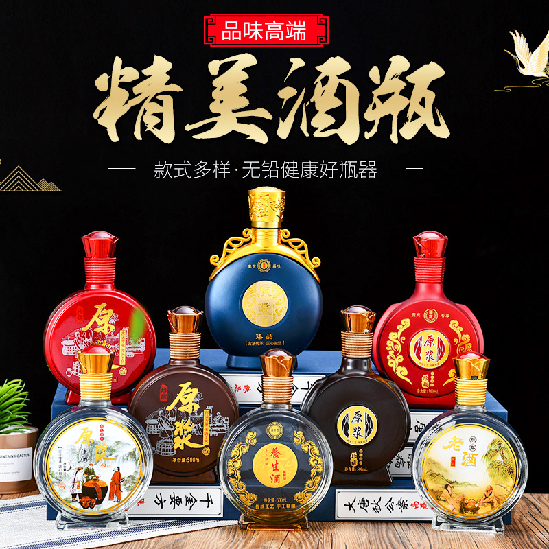 卸売り高白料ガラス瓶空酒瓶500ml低価格白酒瓶黄酒瓶薬酒瓶セット