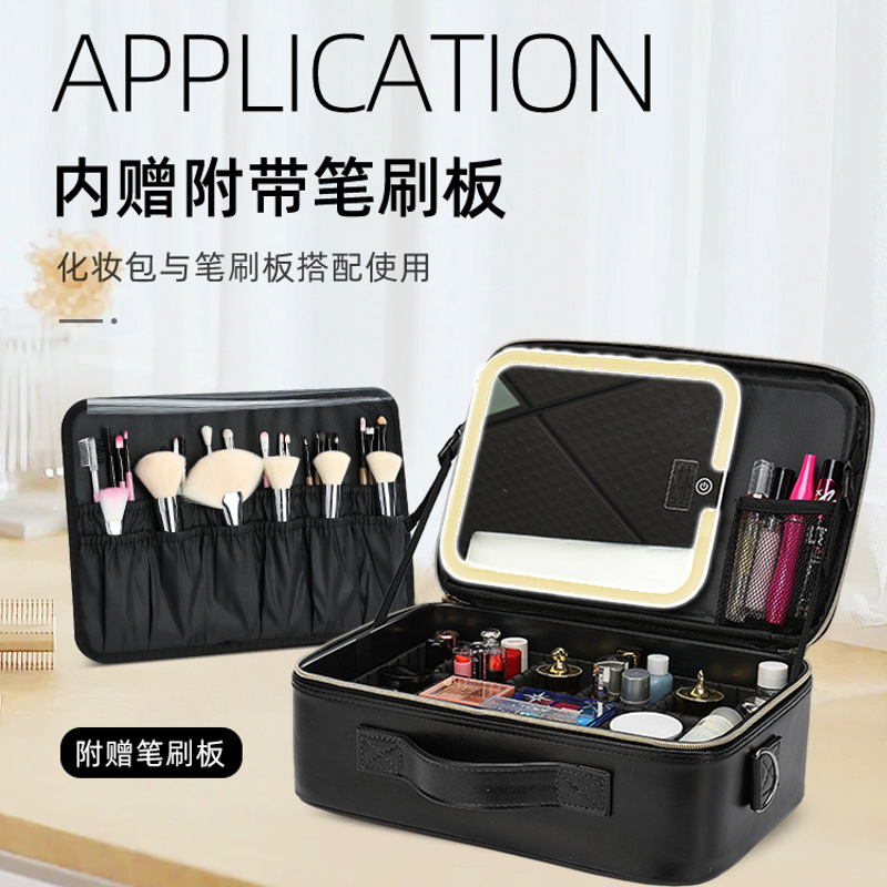 化粧ポーチミラー付きledライト高级感クロスボーダー手提げ収纳バッグ大容量ポータブルプラス高级型旅行鞄