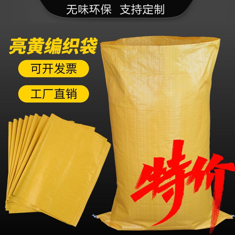 メーカー卸売りは明るい黄色の編み物袋の飼料袋の食糧包装袋を厚くして物流の速達を引っ越して袋を包装します。