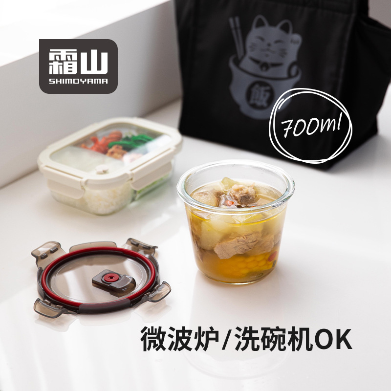 フロストマウンテン ガラススープボウル 深型 電子レンジ対応 密閉スープカップ 学生 サラリーマン ランチボックス ライスとフルーツ付き