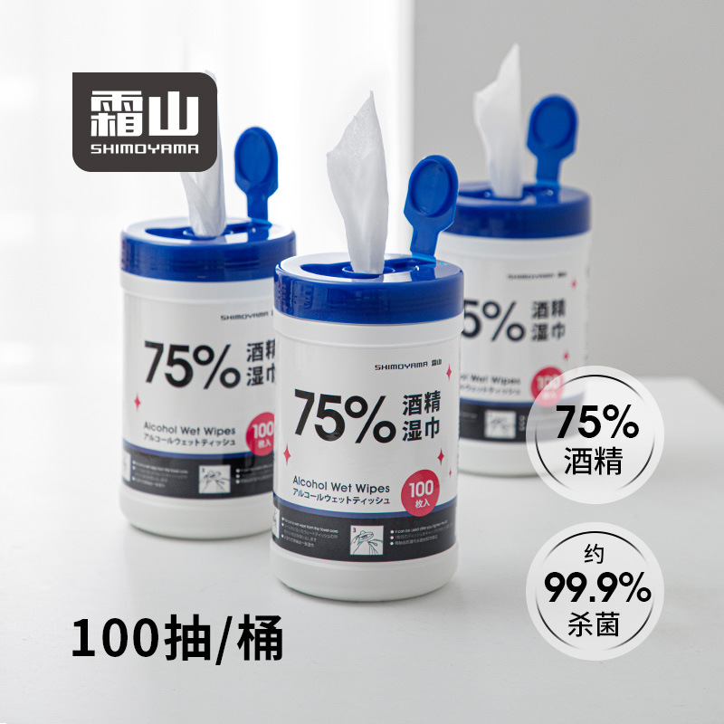 霜山アルコールウェットティッシュバケツ入り75% アルコール使い捨て消毒ウェットティッシュ家庭用外出清潔殺菌ウェットティッシュ