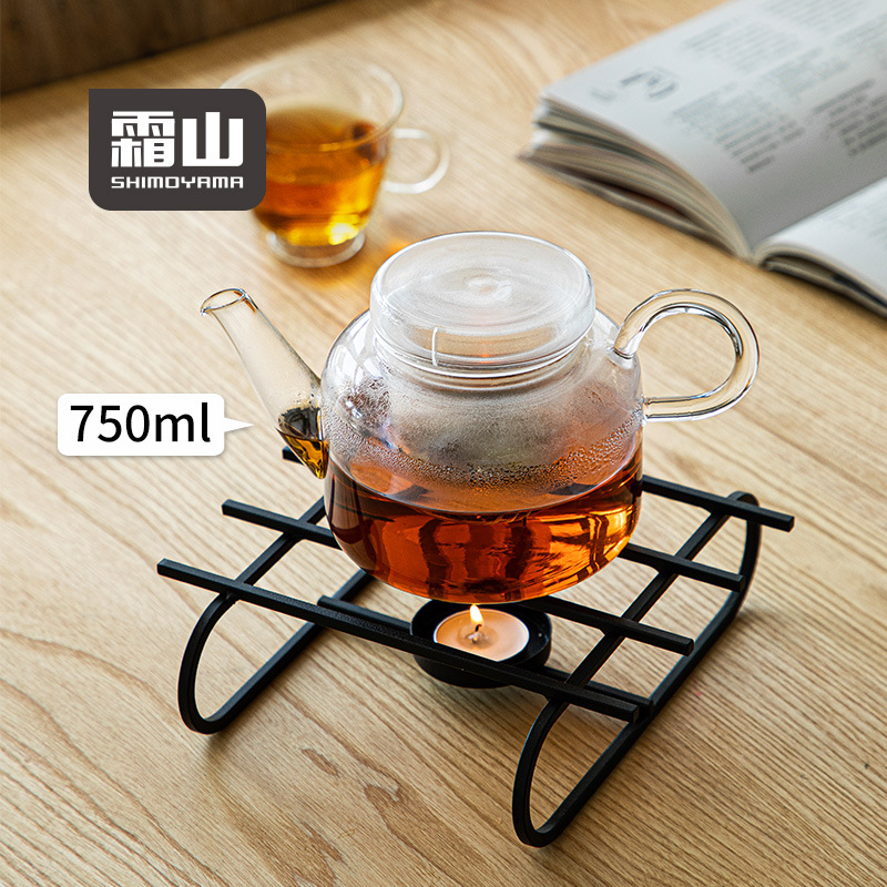 霜の山のガラスのティーポットはティーポットの花のティーポットを浸します。