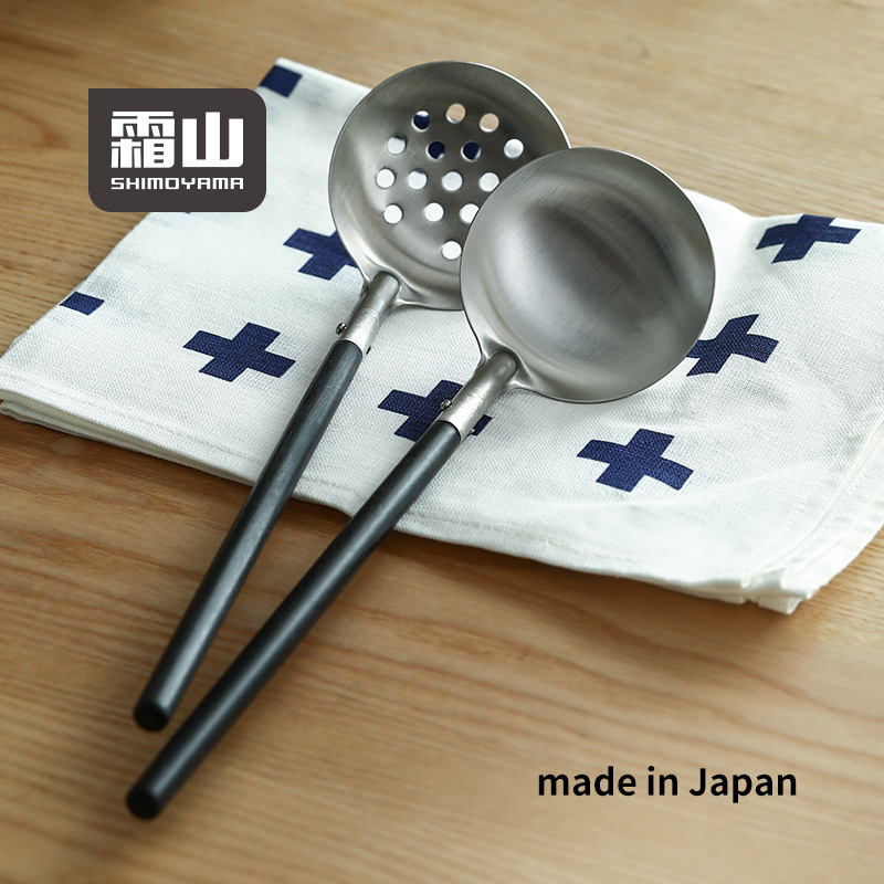霜山304ステンレススプーン漏れスプーン日本輸入家庭用木柄スプーン鍋おでん長柄スプーン