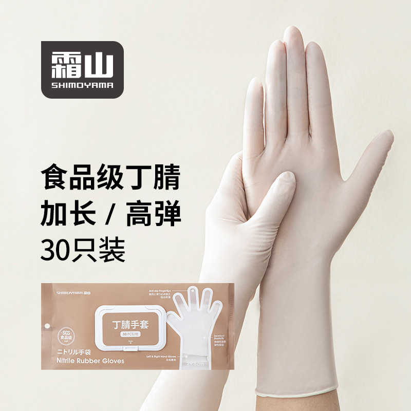 霜山使い捨てニトリル手袋食品級ゴム家事手袋延長焙煎キッチン清潔皿洗い手袋