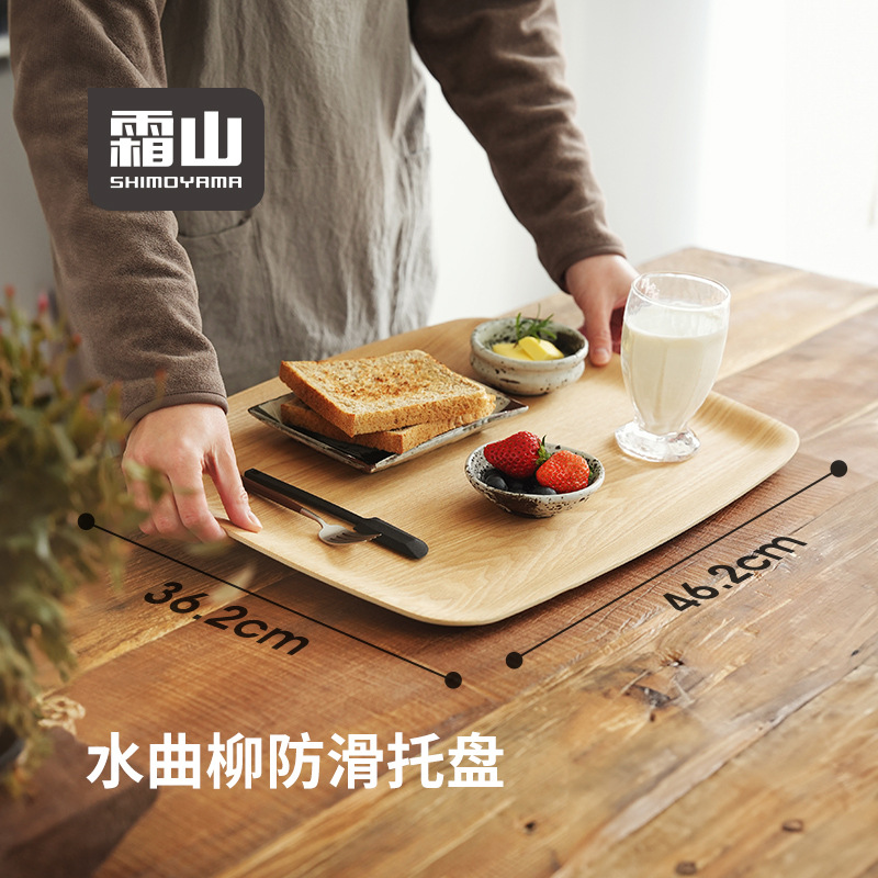 霜山水曲柳トレー家庭用滑り止め木製茶皿長方形シンプル日本式午後茶皿収納皿