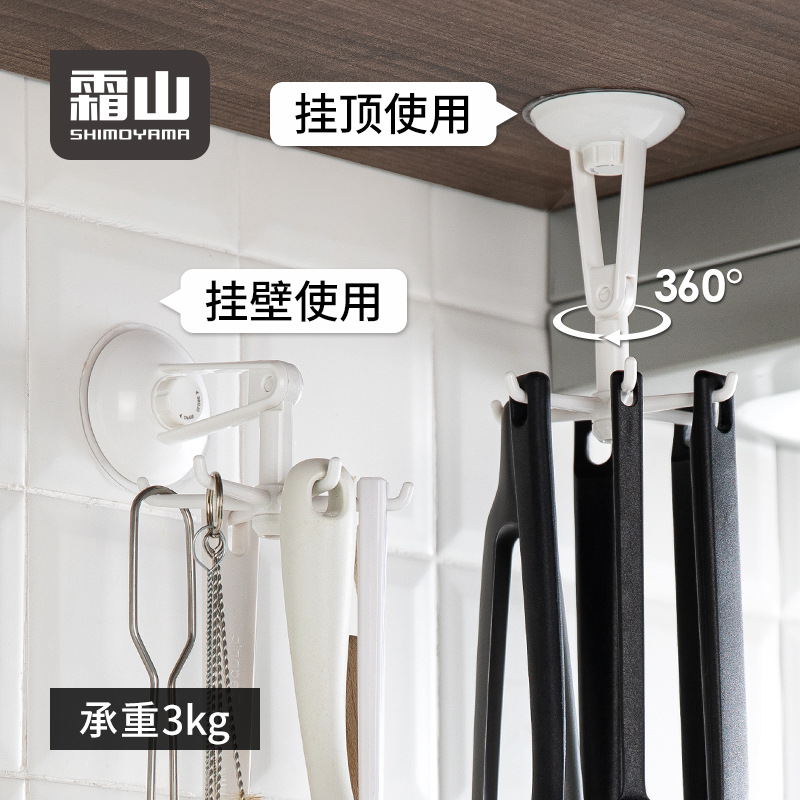 霜山免パンチング六爪回転フック痕无しキッチンおすげバスルームタオルフック多机能置物ハンガー