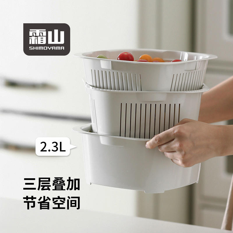 霜山の野菜のたらいの水たまりの台所の客間の家庭用の3セットの果物のかごのプラスチックの野菜のたらいの濾過の野菜のかご