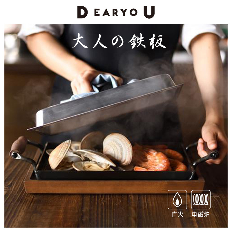日本輸入大人の鉄板蓋付き専門ステーキフライパン鉄板焼き皿厚いフライパン家庭用日本式