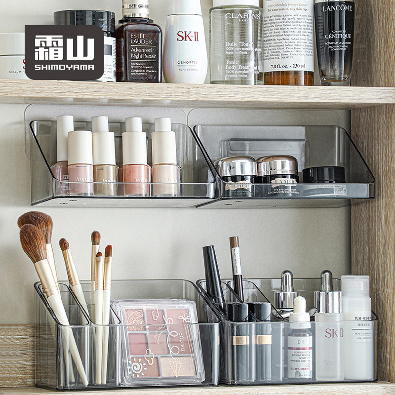 霜山鏡棚収納ケース化粧台化粧品棚壁掛け式穴なし透明デスクトップ整理ケース