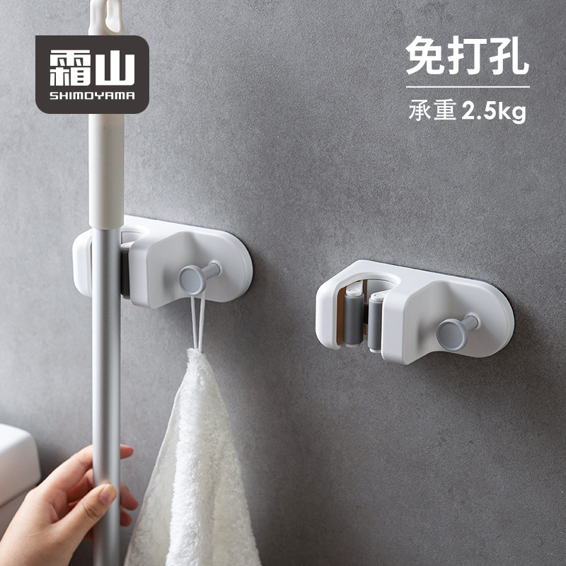 霜山モップフック穴なし壁掛けモップクリップトイレ浴室収納フック家庭用無痕ほうきクリップ
