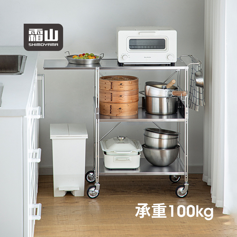 霜山ステンレス食堂車移動可能三階カートキッチン多機能棚家庭用スナック収納バスケット