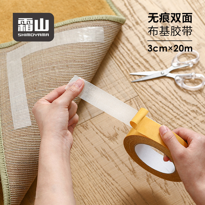 霜山両面布基テープ強力高粘度無痕両面テープカーペット床マット壁面メッシュ固定シール