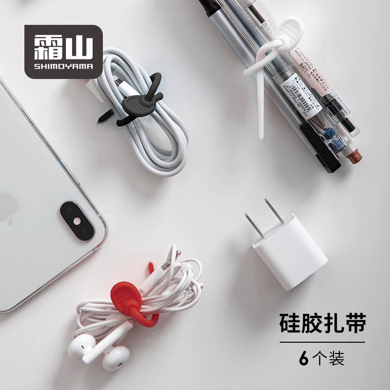 霜山シリコンゴムのイヤホン付き巻線器のデータラインは、ストラップ付きの食品袋の束口にケーブル付きの巻線器を収納しています
