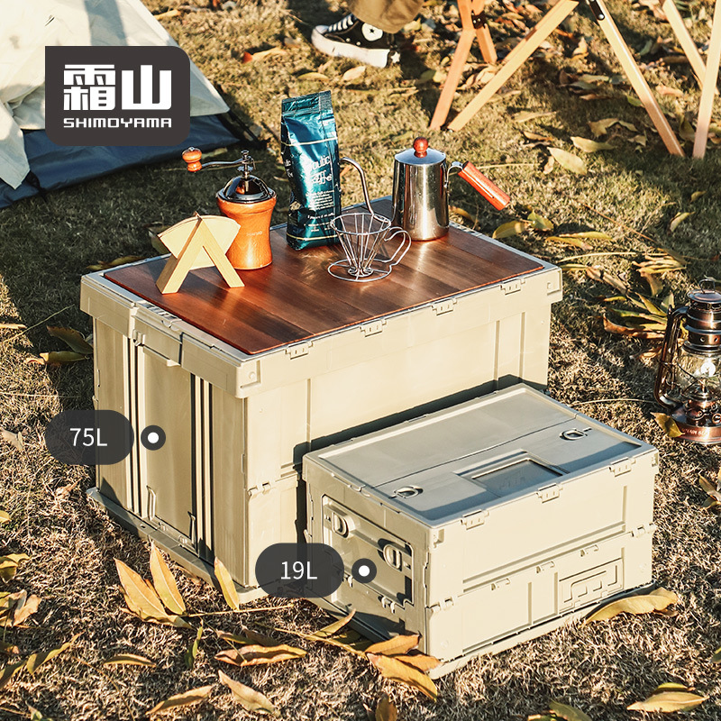 霜山折り畳み可能プラスチック収納ボックスキャンプ車載トランク収納ボックス移動トレイ家庭用整理ボックス
