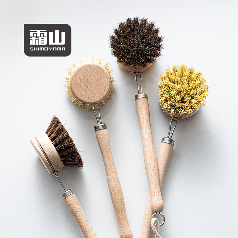 霜山ココナツブラウン鍋ブラシケヤキ柄家庭用洗浄鍋ブラシ台所調理台水槽汚れ除去硬毛長柄洗浄ブラシ