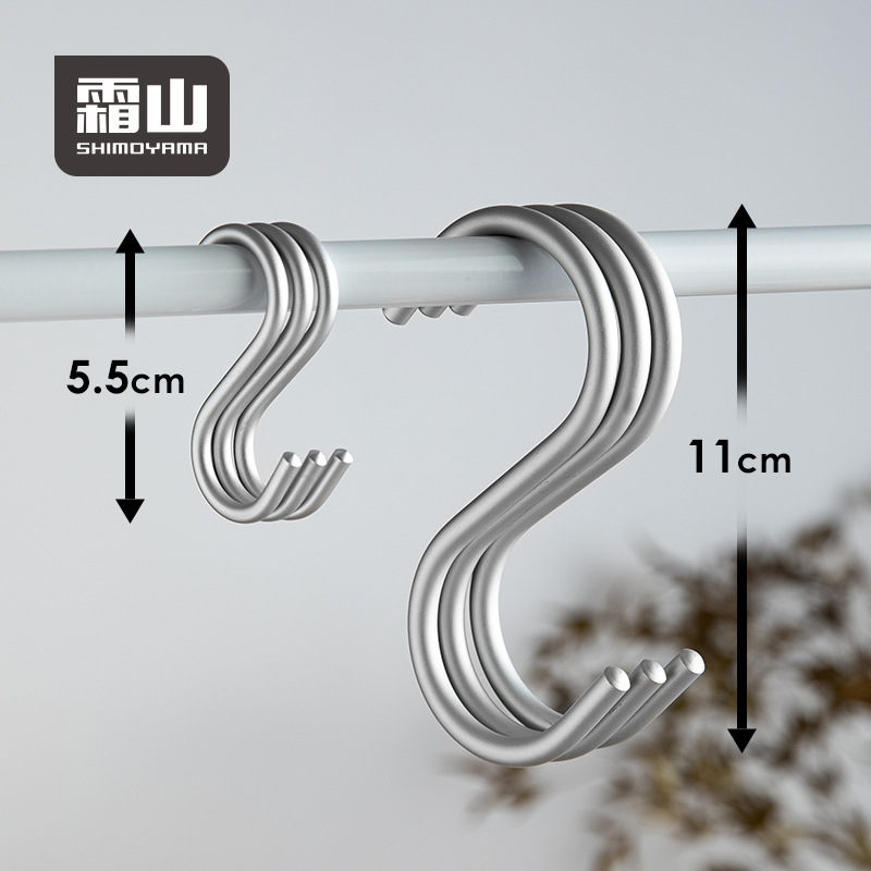 日本霜山アルミ合金s型フック3個入りタンス風呂場キッチンクロスバーフックs字フック穴なし