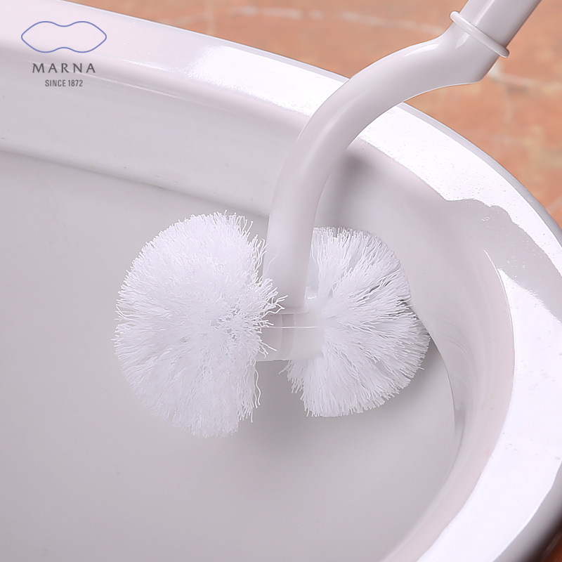 Marna日本輸入便器ブラシセットトイレ便器ブラシ台座付き双球形ブラシヘッド長柄ブラシ