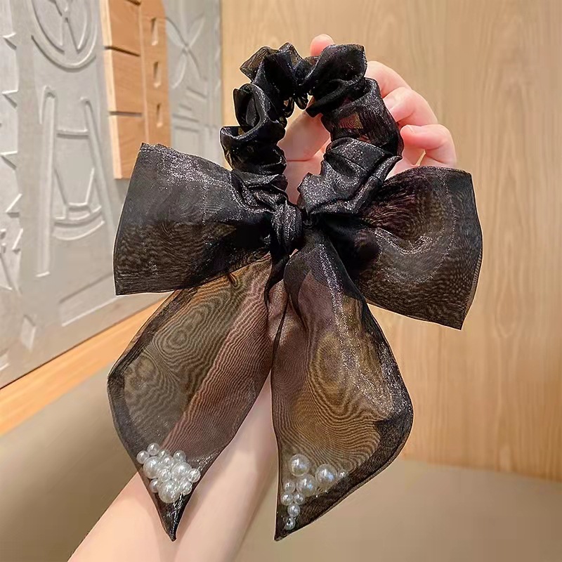 新商品の網の紗のリボンのビーズの大きい腸の輪の蝶結びのシュシュの真珠のレースの紐の女性の気質の復古の髪の装飾品