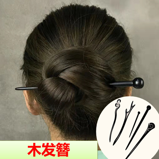 黒檀蛇ヘアピン、シンプルヘアピン、高級日常風、新しいヘアスタイル、中国風、古代風、漢服、モダンハンドメイド