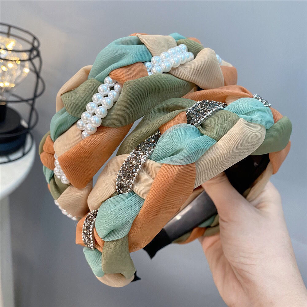 気質の水ドリルの髪飾りの滑り止めのハイエンドのカチューシャのカラー編みの欧根の糸のカチューシャの高い頭の頂の広い辺の女子学生のカチューシャ