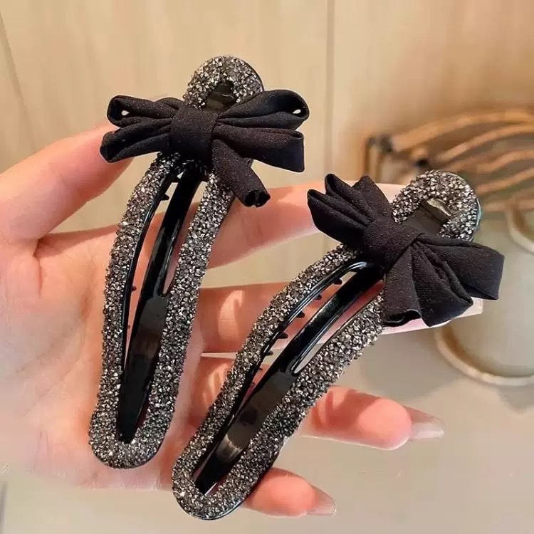 ライトラグジュアリーファッションダイヤモンドボウクリップ、フェミニンな後頭部ヘアクリップ、多用途通勤カモノハシクリップヘッドウェア