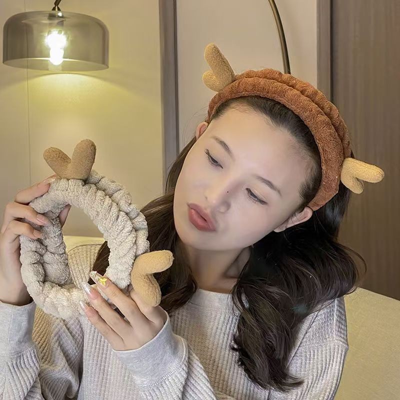 洗顔ヘッドバンド韓国風かわいいネットセレブぬいぐるみ鹿の角耳ヘッドバンドヘッドバンドメイクアップマスク洗濯ヘアアクセサリー