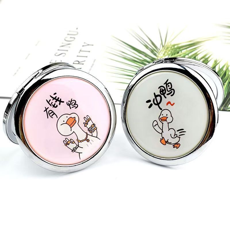 ポータブル化粧鏡インターネット有名人ミニ折りたたみ金属ポータブル化粧鏡かわいい女性ラウンド両面学生ミラー