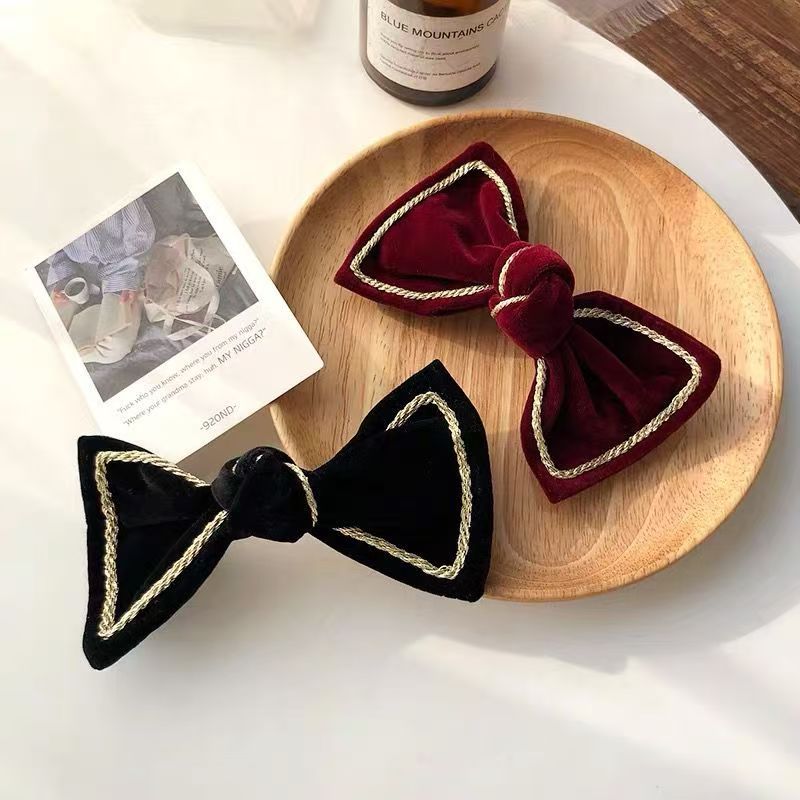 ベルベットリボンヘアピン女性のための 2025 冬の新しいヘアピン後頭部半分結び目ヘアスプリングクリップハイエンド帽子