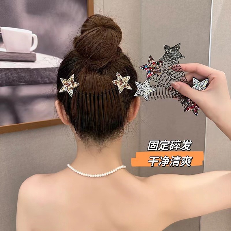 女性用の新しい五芒星の前髪ヘアコーム、2025年ラインストーンスターヘアコーム、後頭部の切れ毛を整理するヘアピン