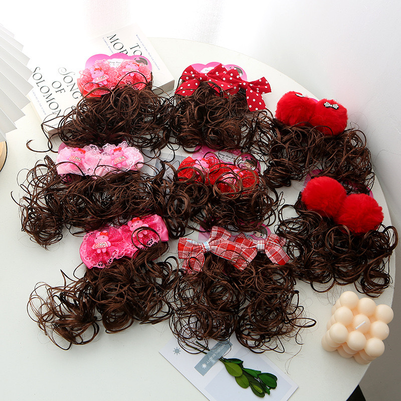 2025 新しい子供のかつら女の子ベビー長い髪女の子弓ショート巻き毛プリンセスヘアピンヘアアクセサリー頭飾り