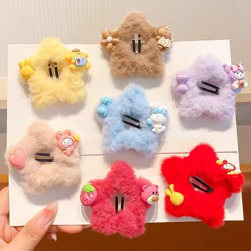 女の子のかわいい秋と冬の星のヘアピンぬいぐるみ五芒星のヘアピン子供のシンプルな漫画の小さな女の子は髪を傷つけません bb